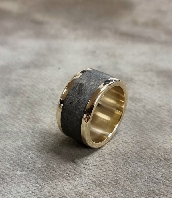 Ring Denne ring har jeg lavet på en drejebænk, og midten består af glas pulver fra vores glasblæser kabine